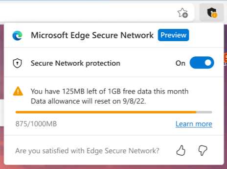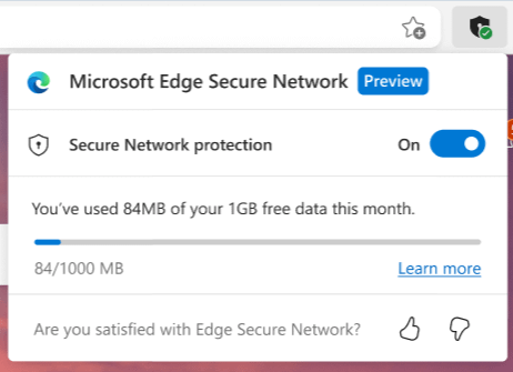 Cara memeriksa batas data Jaringan Aman Microsoft Edge